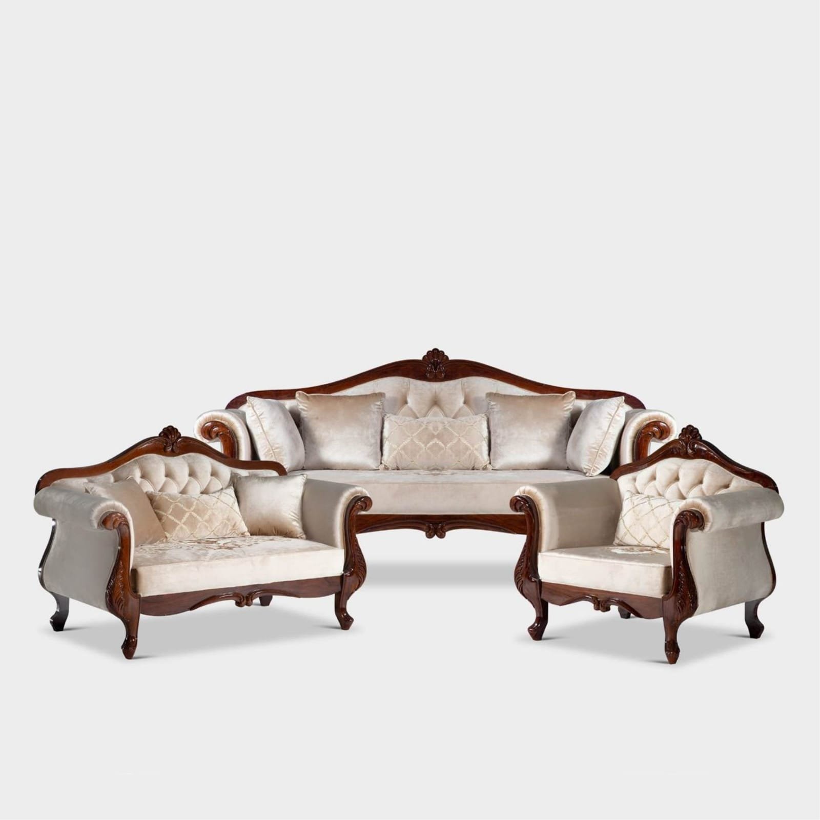 - Deep button-tufted upholstery for timeless elegance.